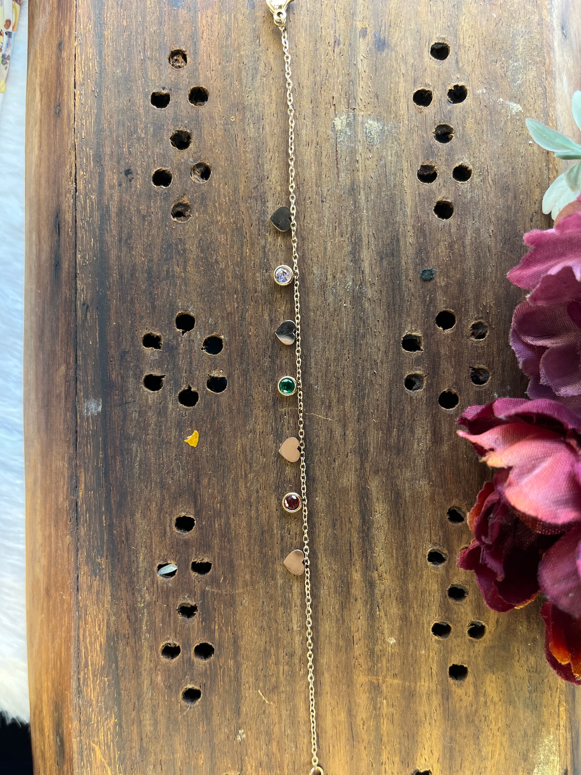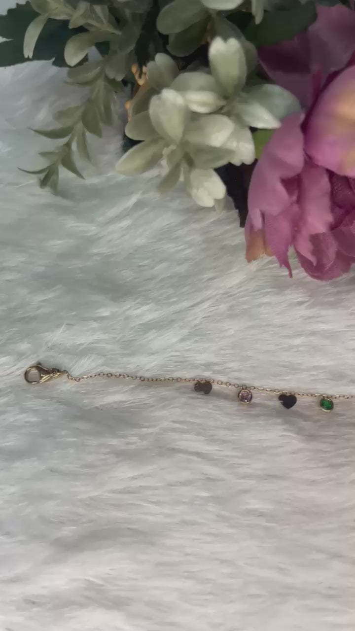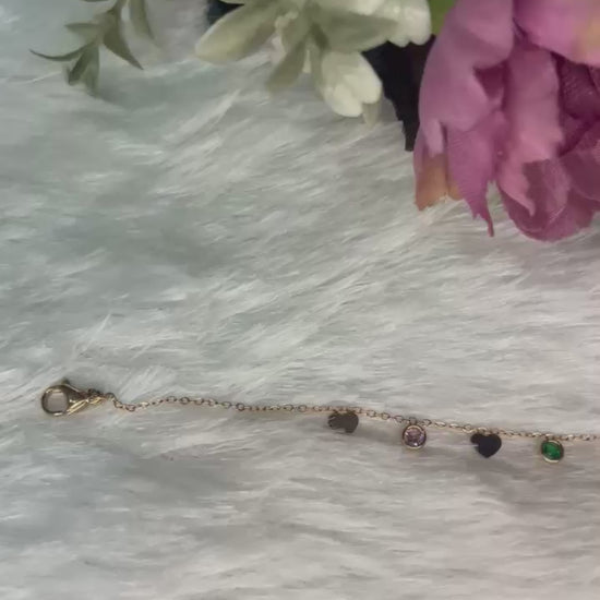 A delicate gold bracelet featuring playful round charms and a hint of green stone — a chic touch for everyday elegance. (KNK120031D)