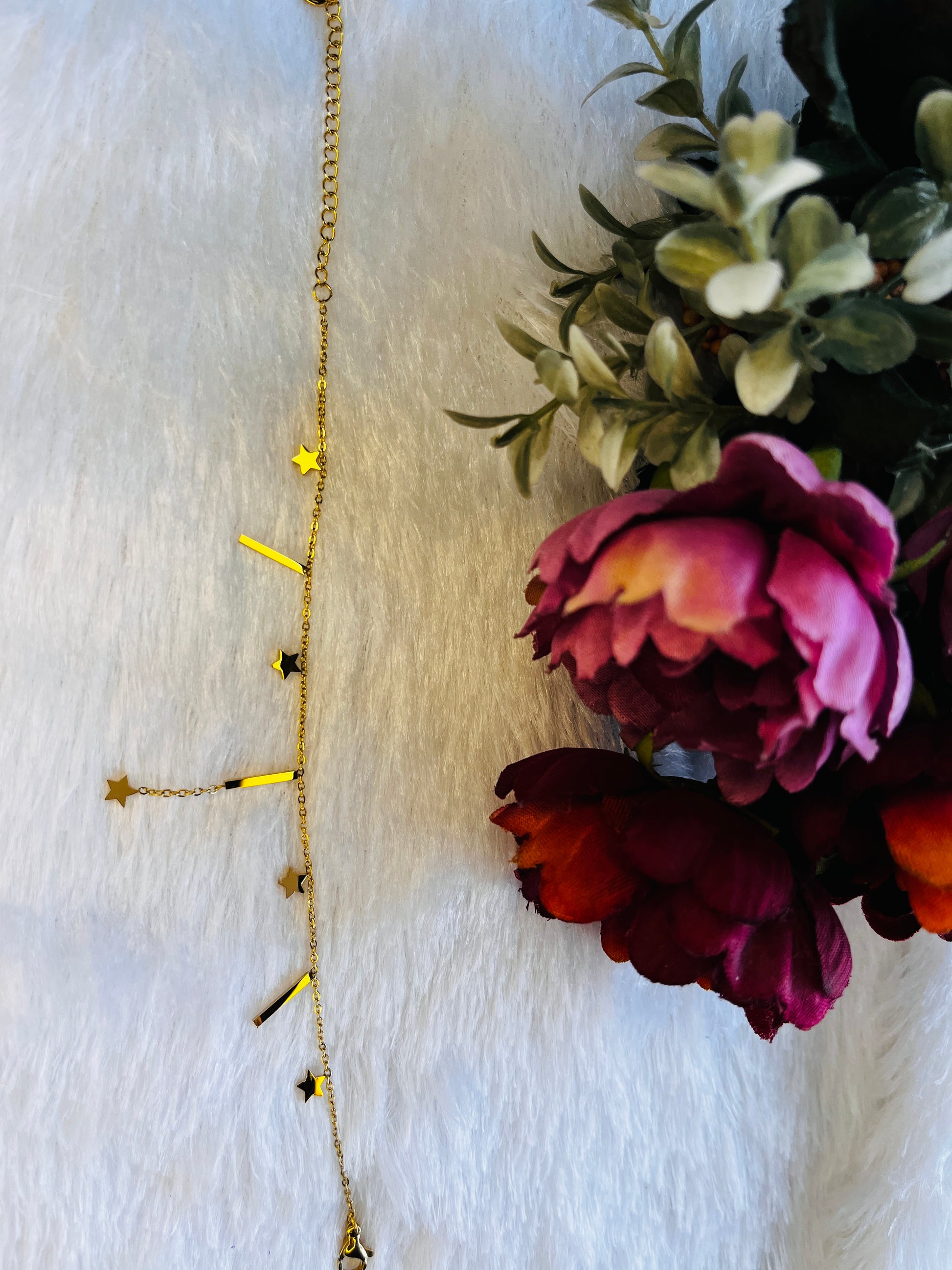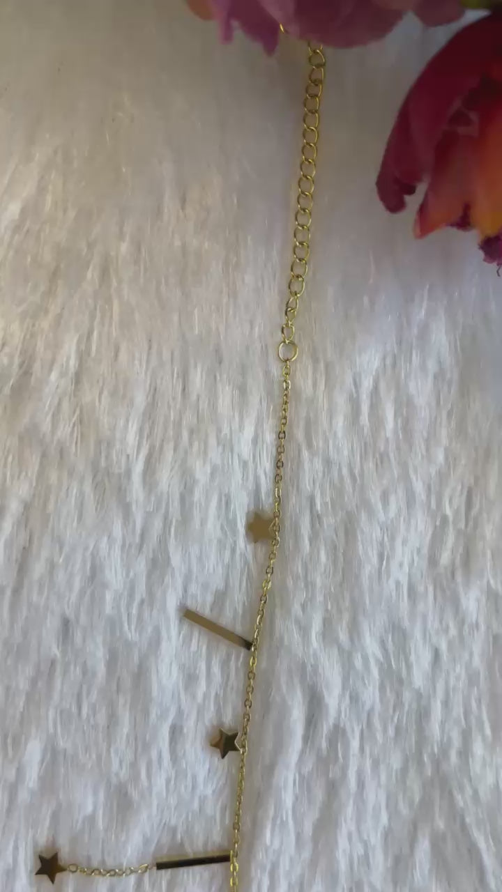 A dainty gold bracelet featuring twinkling star motifs, crafted to add a touch of celestial elegance to your everyday style. (KNK150033B)